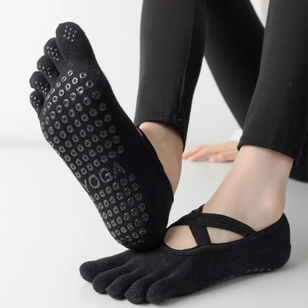 גרבי פילאטיס עם הפרדת אצבעות | שחור אצבעות חצויות