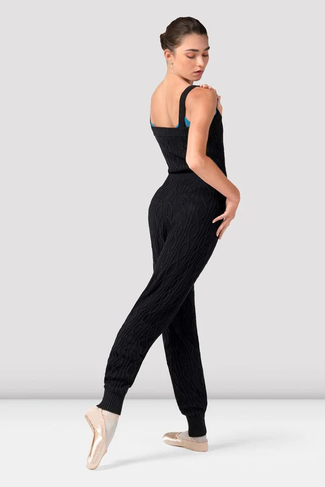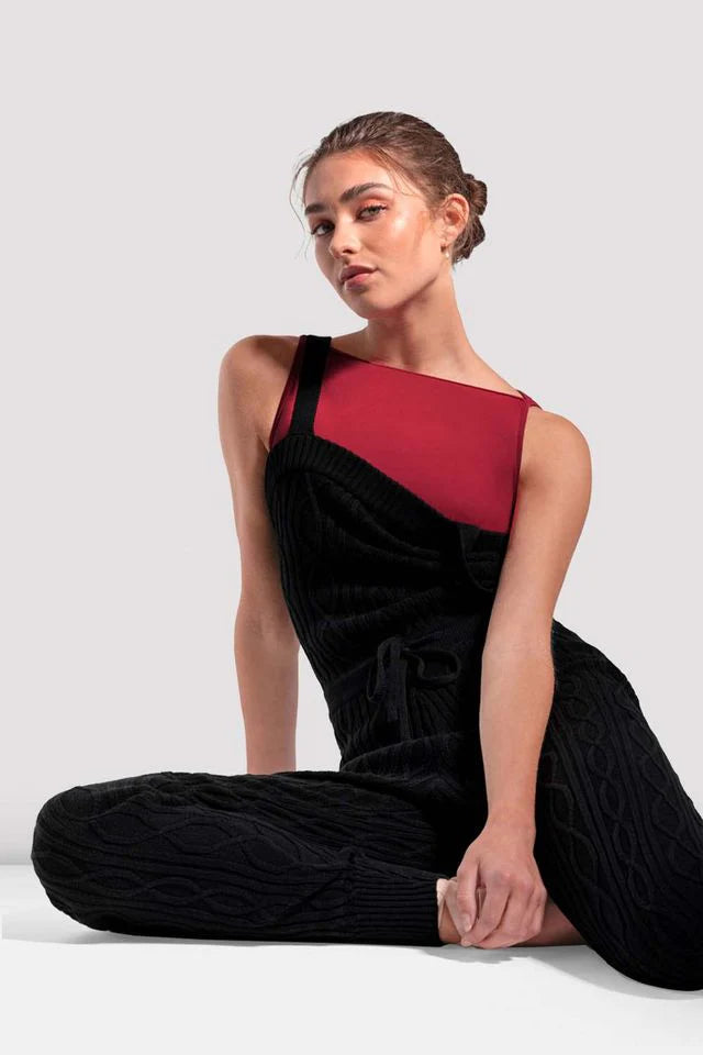 Our Ladies Knit Jumpsuit features an open square neck with tank styling, rib ankle cuffs for a secure fit, and an adjustable tie front waist. The perfect layering piece to keep you cozy during every warmup. Whether you're at the barre or backstage, our Camellia Knitted Warm-ups keep your muscles comfortably warm and ready.